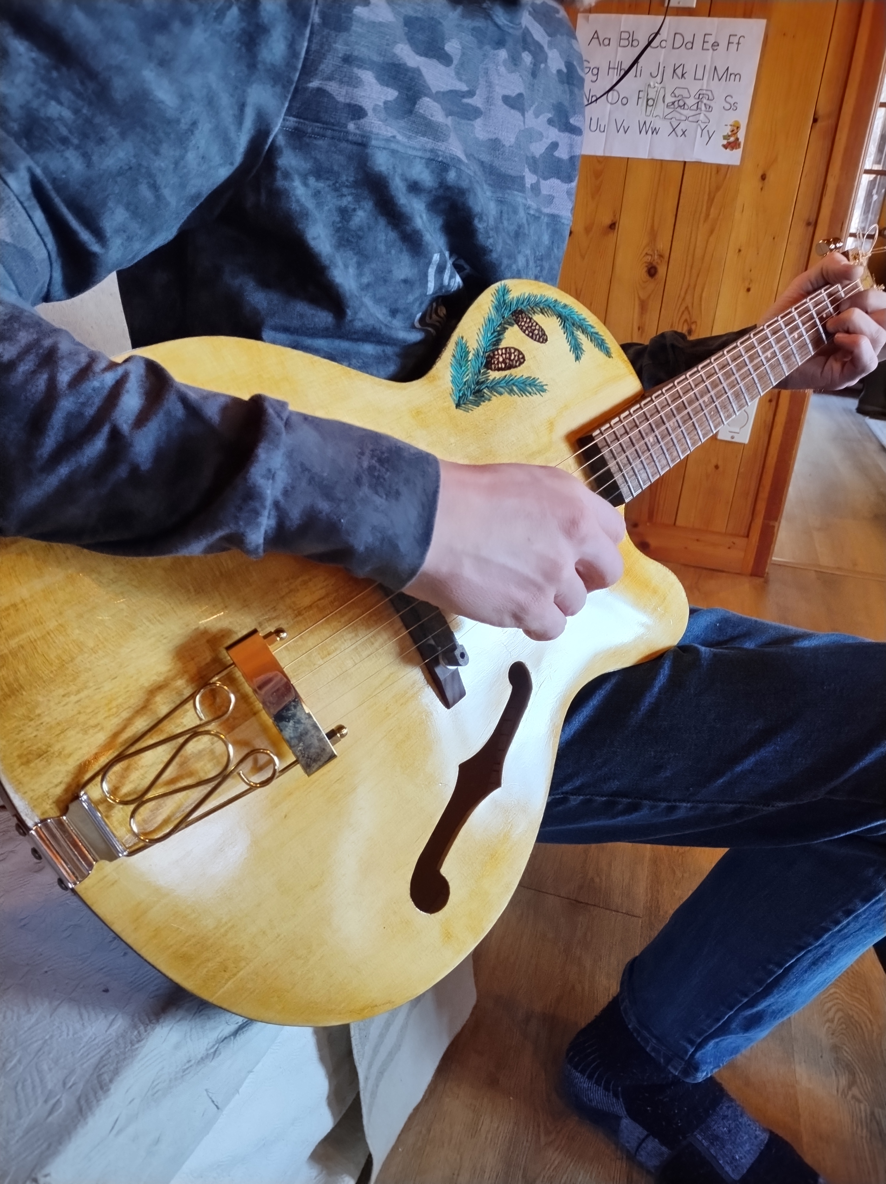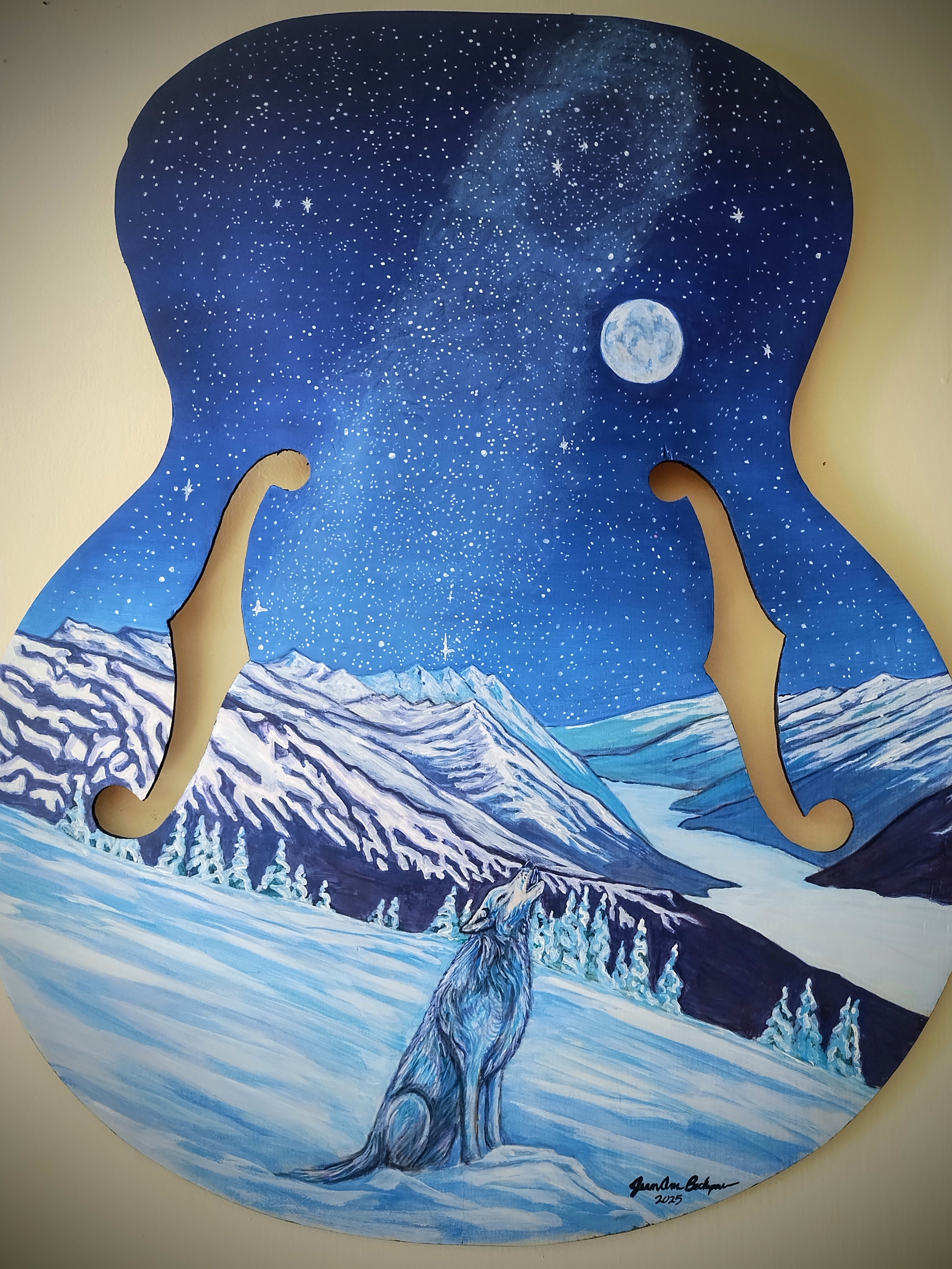 Birch Path Studio is the creative collaboration between husband and wife, Mike and Jean Ann Berkenpas. Both are self taught artists inspired by the landscapes and mountains around their farm in Valemount BC. Mike is a musician and luthier who transforms locally harvested wood into hand crafted guitars, with an emphasis on sustainable building practices and beautiful sound quality. Jean Ann’s fine art is inspired by the beauty of nature and the landscapes, wildlife and natural materials around their farm. She works in many mediums, including acrylic, watercolor, and sheep’s wool harvested on their farm.